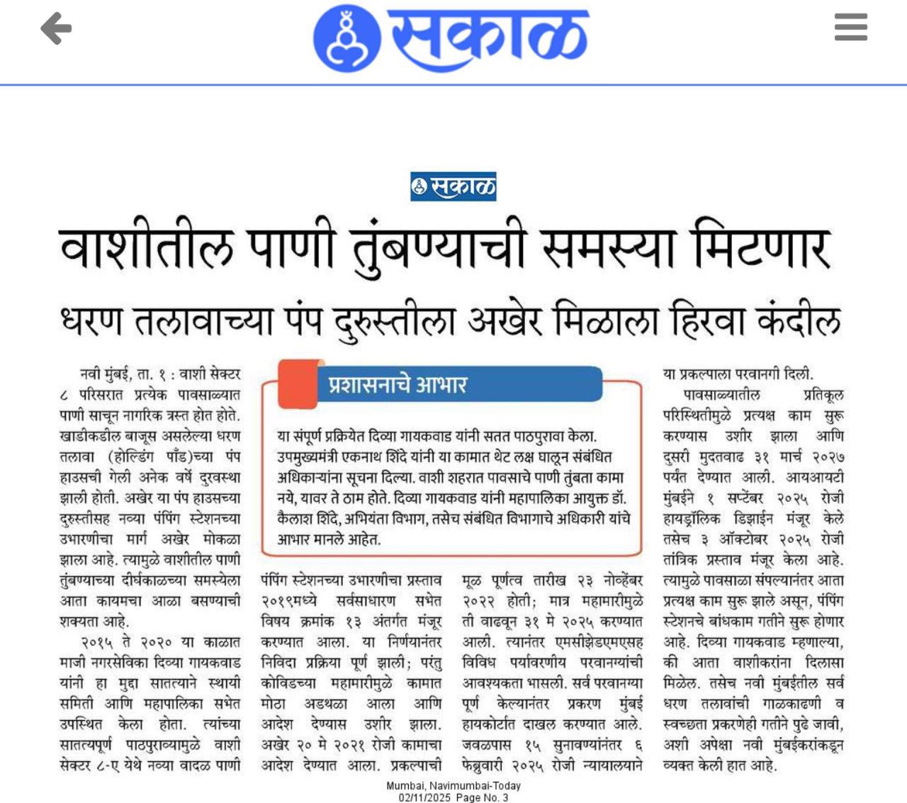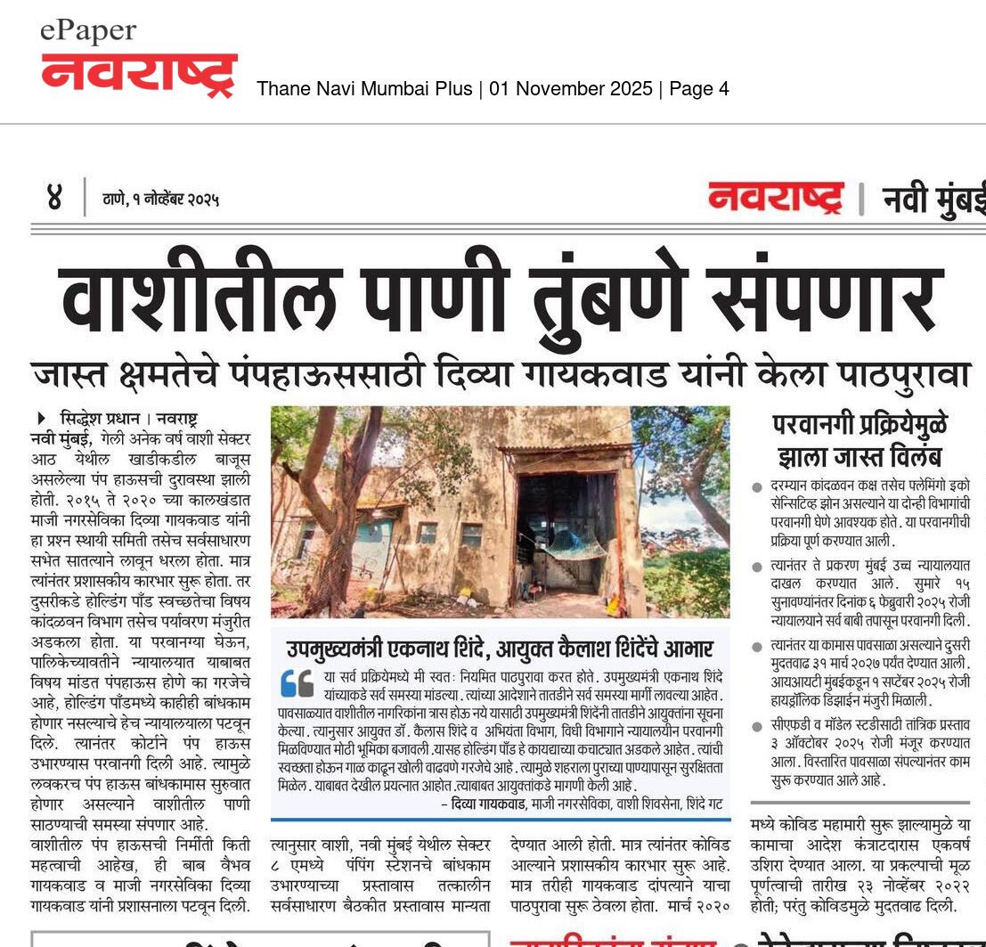 Known for her responsiveness, accessibility, and transparency, Divya continues to remain deeply connected to Vashi’s residents — listening to their issues, conducting field visits, organizing welfare activities, and ensuring every concern receives proper follow-up. Grounded, compassionate and action-oriented, she stands as a leader committed not just to politics, but to people-first public service.