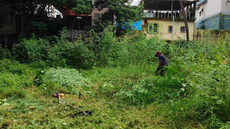 Grass trimming and cleaning at Bal Gopal Ground in Sector 7/8, Vashi is in progress. Citizens are requested not to dump garbage on the premises.