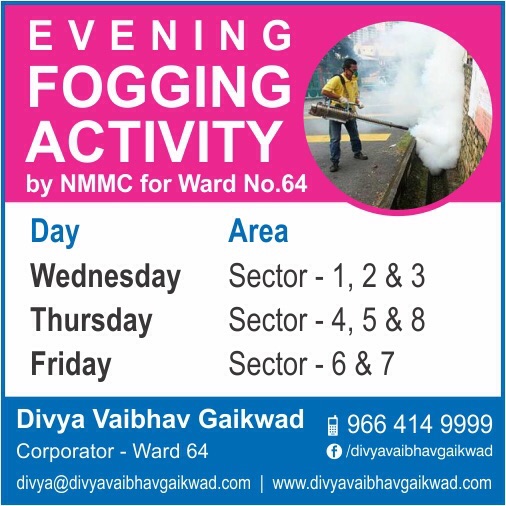 MALARIA and DENGUE. Fumigation will be carried out within Society Premises and Surrounding Vicinity in our area in EVENING from TODAY. Timing : 5:30pm to…