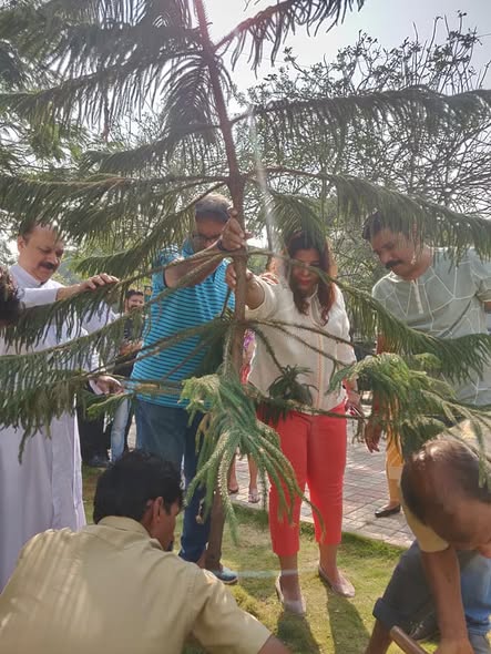 Planted two Christmas trees today near *The Dream Wall @ Sacred Heart Church Vashi* with the hands of Fr. D’Souza & residents of my ward.