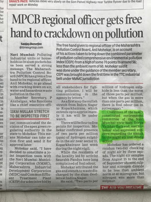 #DIVYA GAIKWAD Chairman Environment Advisory Committee NMMC working for Pollution Free Navi Mumbai…Today’s TOI.