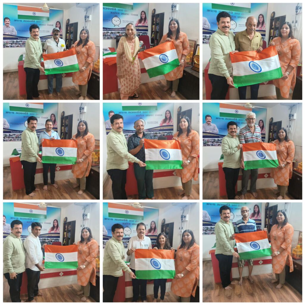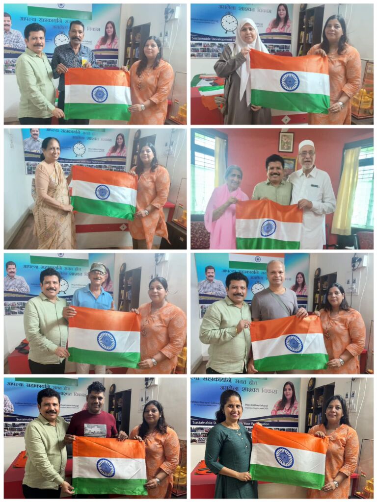 The Har Ghar Tiranga campaign encourages every citizen to proudly hoist the national flag at their homes, strengthening the bond of patriotism and national unity. In support of this initiative, Divya Vaibhav Gaikwad personally distributed the Indian National Flag to residents across the ward.