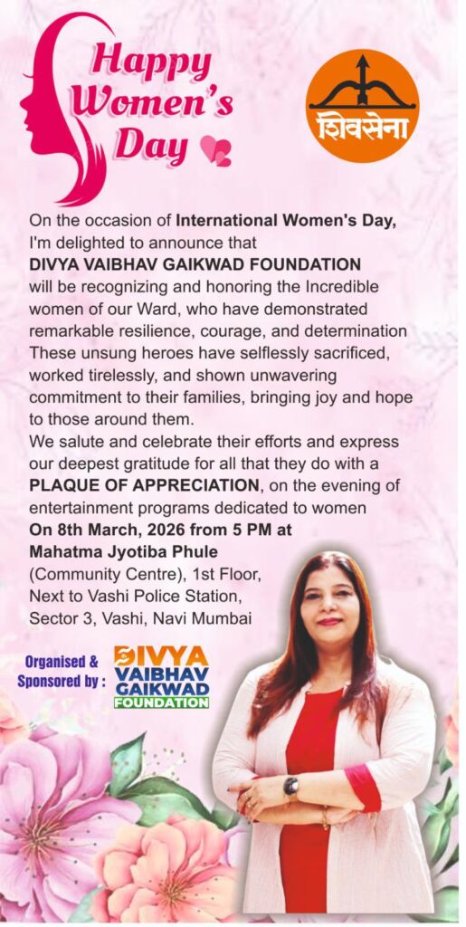 On the occasion of International Women’s Day, Divya Vaibhav Gaikwad was felicitated by the Senior Citizens Club of Vashi Sector 8—making it a truly meaningful and heartfelt moment. Receiving appreciation and blessings from respected elders of the community adds a special value, as it reflects trust, encouragement, and a deep connection with the people she serves. Such recognition is not just an honour, but a reminder of the responsibility to continue working for the betterment of society.