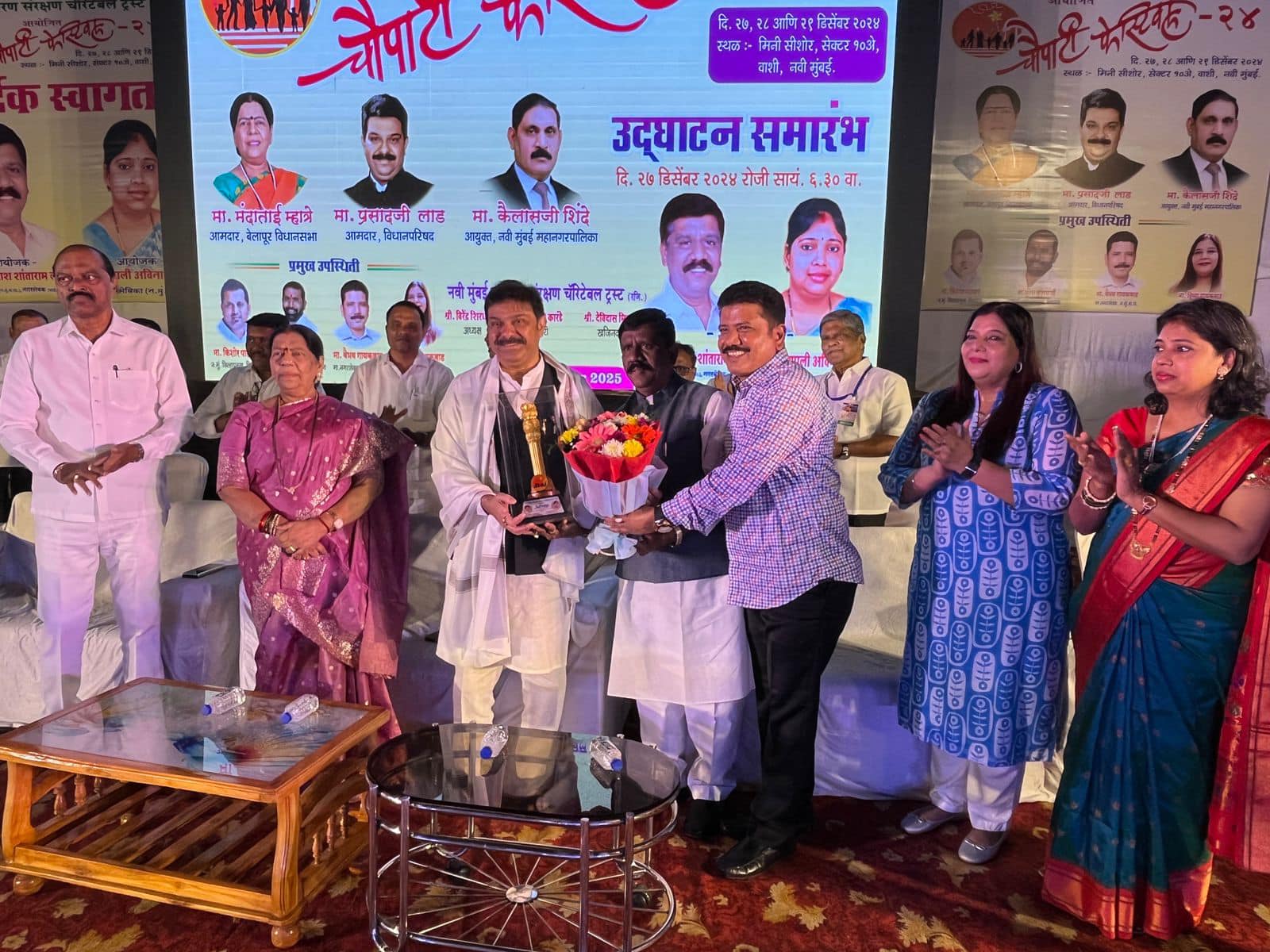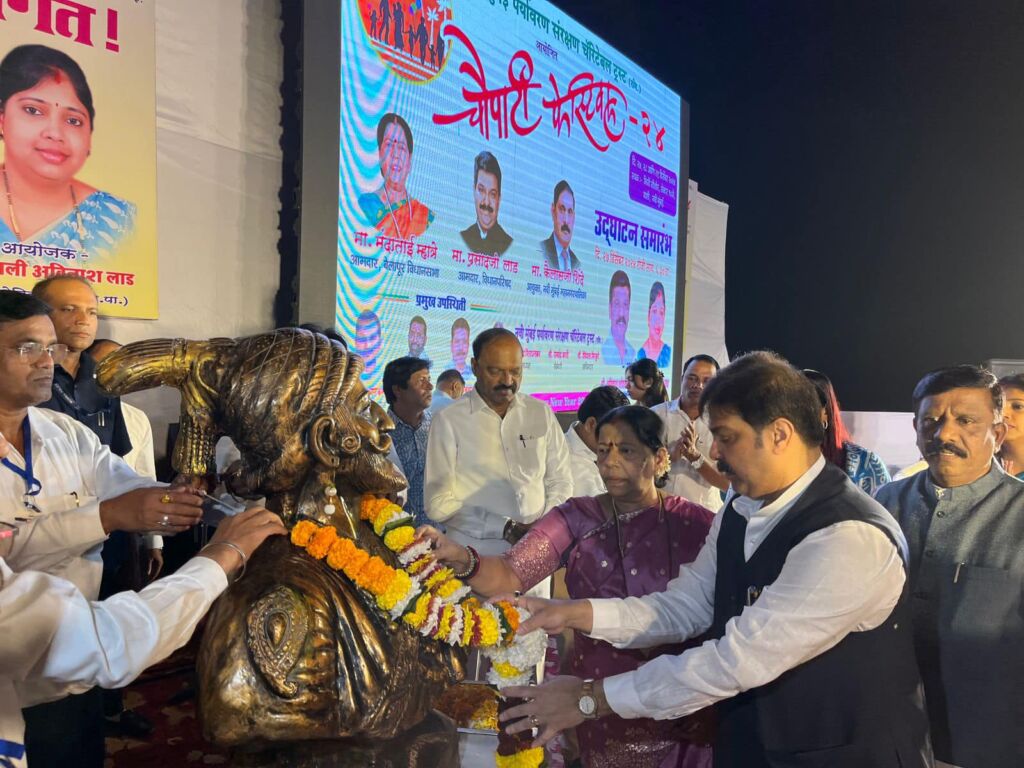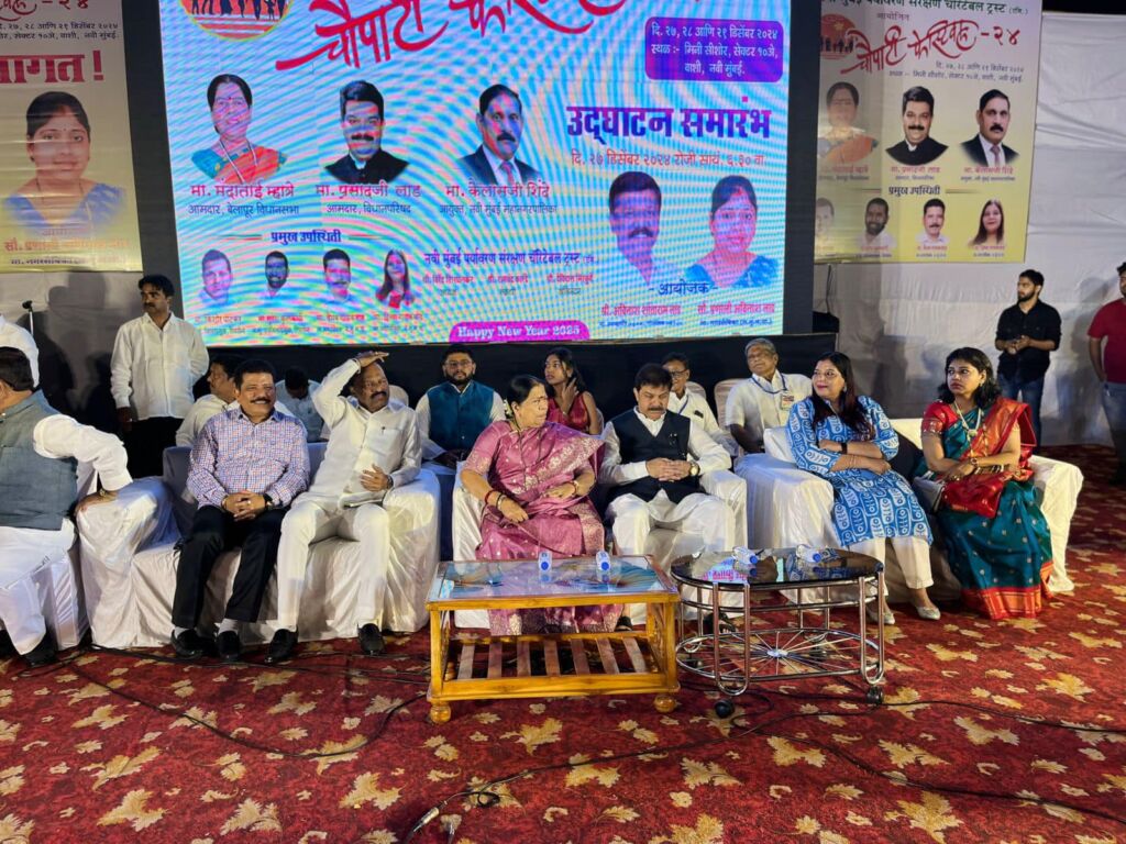 Attended the inauguration ceremony of the Navi Mumbai Paryavaran Sanrakshan Charitable Trust Chowpatty Festival 2024. The festival was inaugurated by MLA Manda tai Mhatre and MLC Prasad Lad, marking a vibrant start to the celebrations.