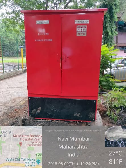 It gives me immense pleasure to inform you that MSEB on 08.08.2018 has replaced 22 KV High Tension old Pillar at Malak Huseini Baug, Sector 8, Vashi. This High Tension Pillar was replaced with #NEW SCADA compatible 22KV Ring Main Unit* & installed in IPDS scheme run by Central Gov.