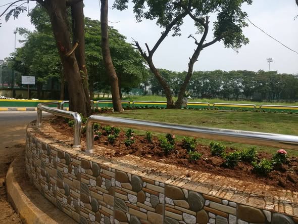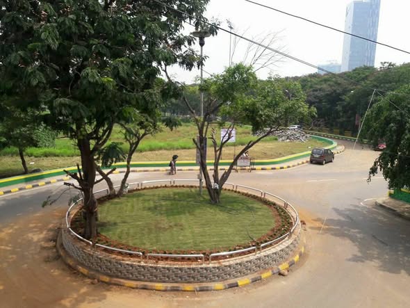 A complete facelift has been given to Sector 6 Subway Roundabout. Smaller Island, Wider Roads, Textured Tiles on wall with Steel Barricade brace & Beautiful Landscaping!