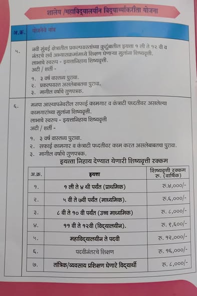 #NMMC SOCIAL WELFARE Department is providing *Scholarship for Students from standard I to X , Standard XI, XII & Graduates of NAVI MUMBAI.*