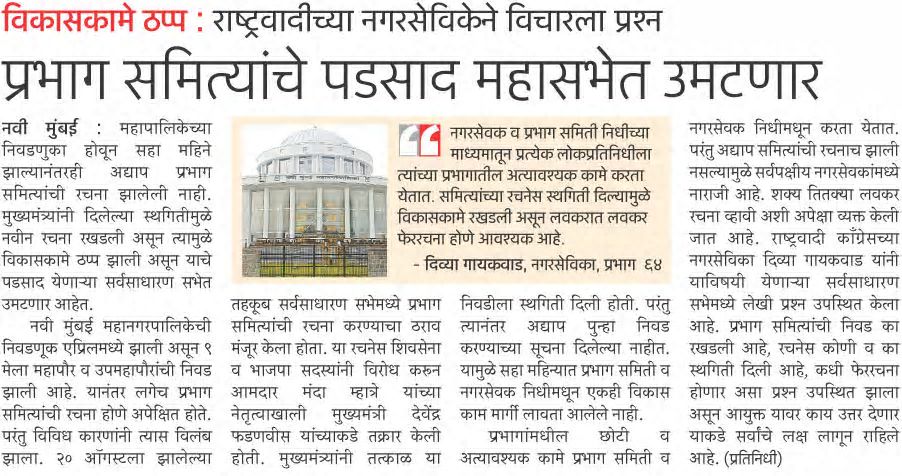 Civic Participation Civic Work UpdatesOpen air gym inaugurated today by senior citizensByDivya Vaibhav GaikwadNovember 1, 20160Comments Grateful to share this update with our community. Open Air Gym inaugurated today by Senior Citizens & Divya Vaibhav Gaikwad.