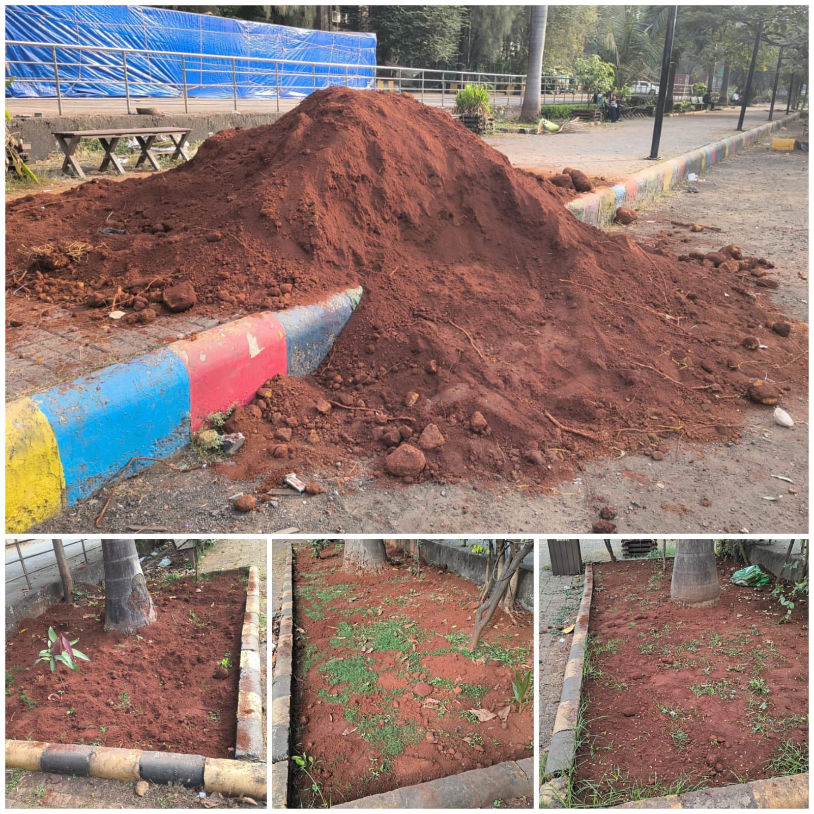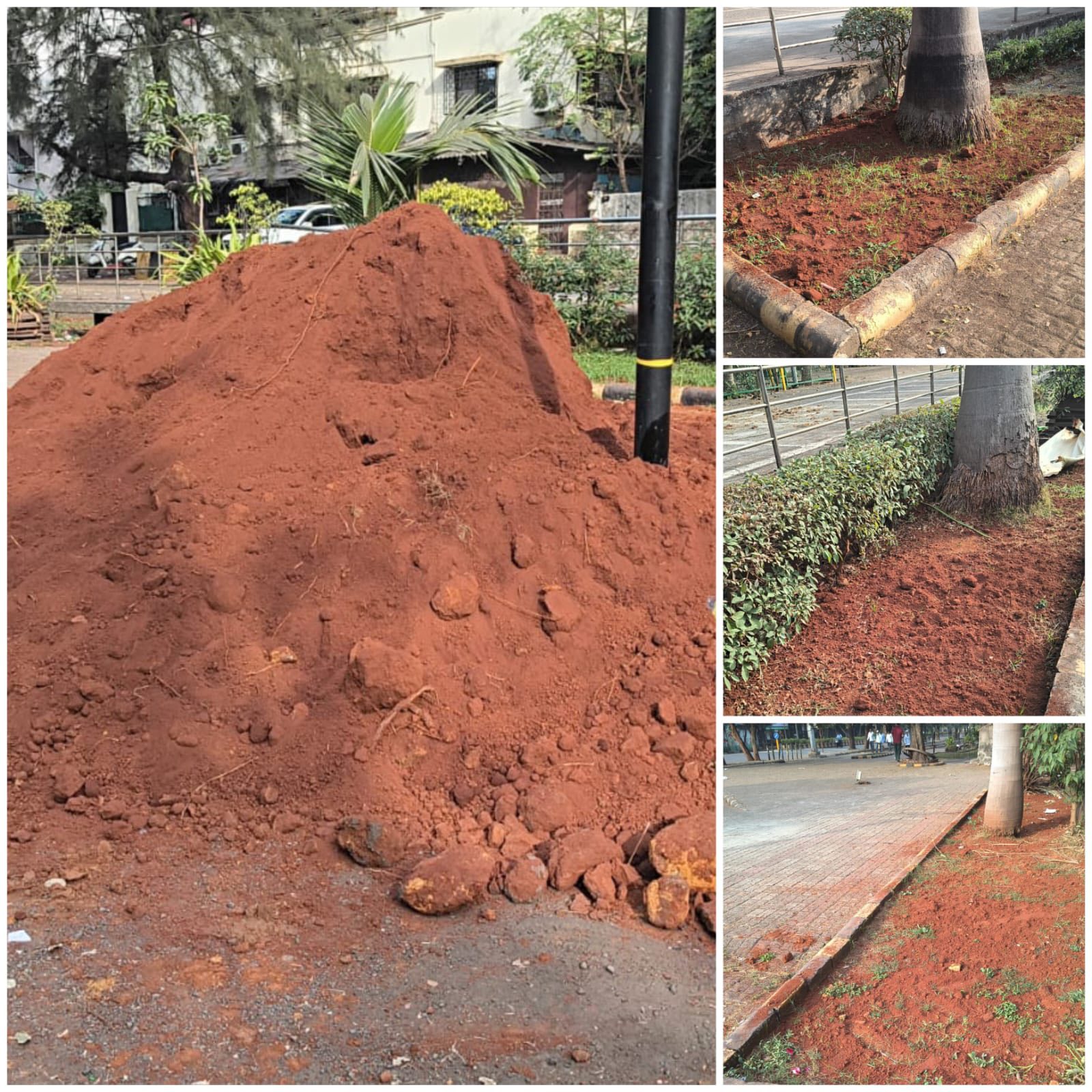 Proper soil nourishment is essential for the healthy growth of plants and the sustainability of green spaces. As part of ongoing maintenance and beautification efforts, red soil has been added around the plants near the cycling track, enhancing soil quality and supporting stronger root development.