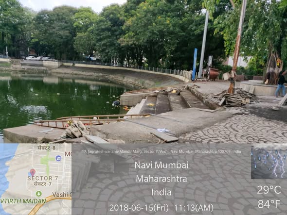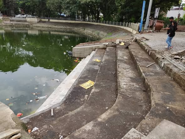 Repair work of broken steps at JAGRUTESHWAR TALAO/POND in SECTOR 7, Vashi is in progress.