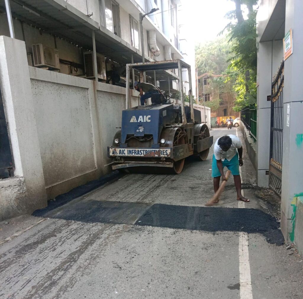 Addressing road maintenance concerns promptly is essential for the safety and convenience of daily commuters. Today, NMMC completed road patch filling work in our area, resolving uneven stretches and minor potholes to ensure a smoother driving and walking experience.