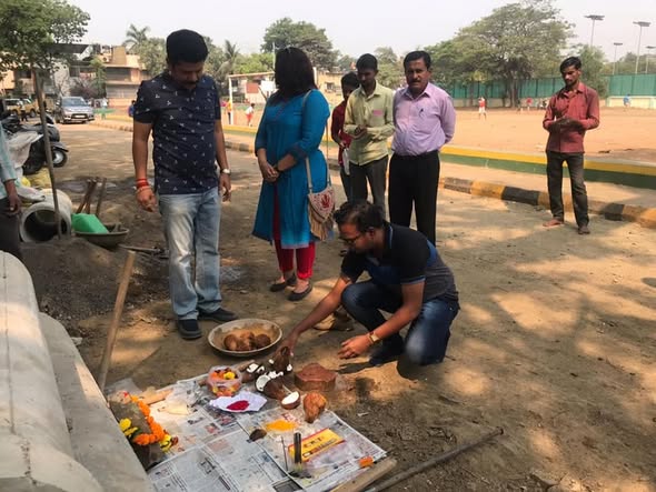 Started Sewrage Line connection work for NMSA Ground Toilet facility.