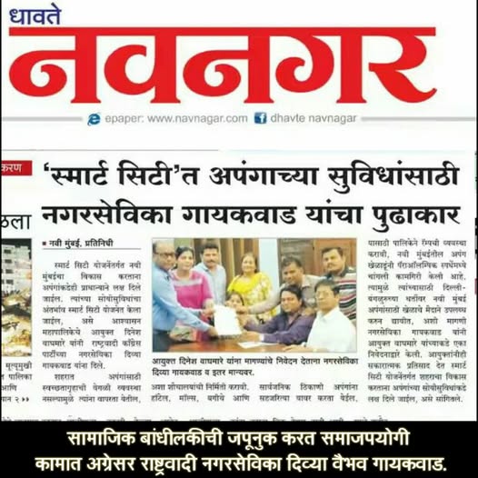 Today’s Navnagar Newspaper covered Divya Gaikwad meeting with NMMC commissioner regarding facility for Handicaps in Smart City project.